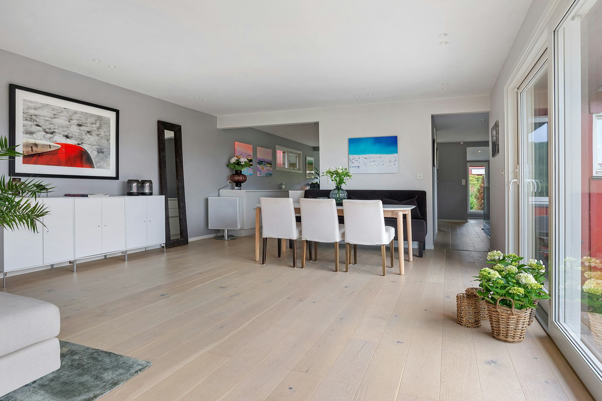 - Højglans reflekterer meget lys og skaber et eksklusivt, moderne udtryk. Det kan få rummet til at virke større, men kræver mere vedligeholdelse, da støv og fodspor ses tydeligere.
